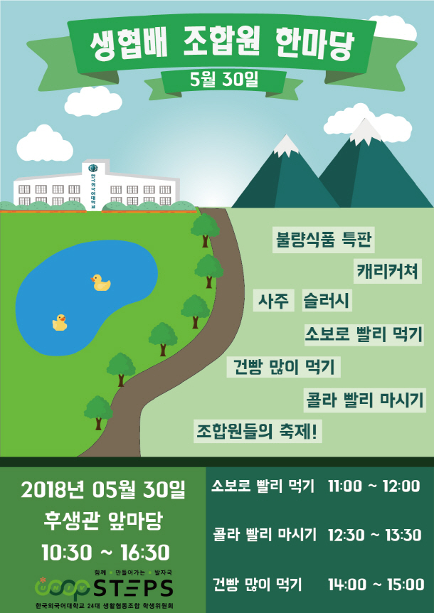 제 24대 생협 학생위원회에서는 지난 2018’년 5월 30일 수요일 후생관 앞 공터에서 “2018′ 생협 조합원 한마당”을 진행하였습니다.